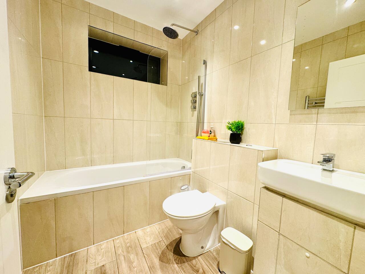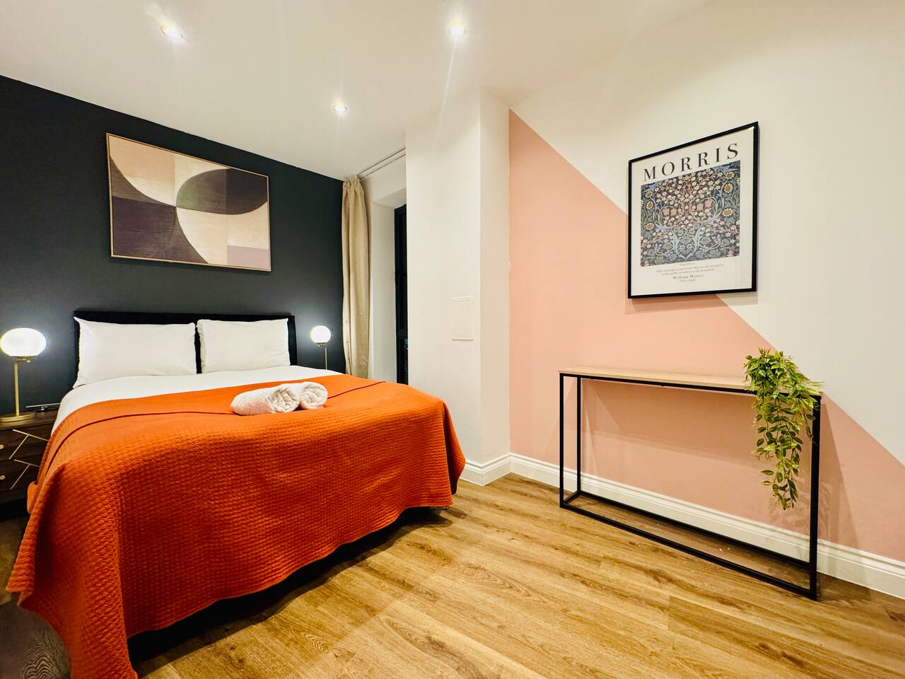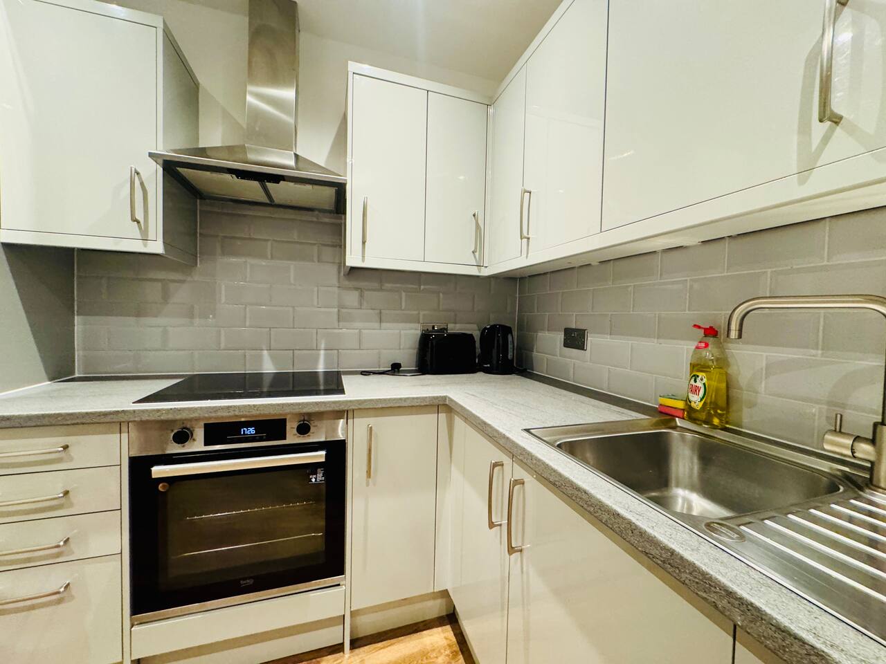 This bright and modern apartment has been finished to a high standard throughout, offering a relaxing base in central Brentwood. 🛏 Bedrooms & Sleeping Arrangements Bedroom 1: 2 x double beds Bedroom 2: 1 x double bed Living Room: 1 x double sofa bed Comfortable mattresses, fresh hotel-quality linens and plenty of storage in each room ensure a great night’s sleep for everyone. 🛁 Bathroom 1 modern bathroom with shower/bath combo Fresh towels and basic toiletries provided 🍽 Fully Equipped Kitchen Cook at home with ease in the sleek, fully equipped kitchen, including: Oven & hob Fridge/freezer Microwave Kettle & toaster Full set of cookware, utensils, plates and glasses 🛋 Living & Dining The open-plan living area is ideal for relaxing after a day out: Comfortable sofa (converts into a double bed) Smart TV (for your streaming accounts, if applicable) Dining area for shared meals or work space Amenities Fully furnished to a high standard Fast Wi-Fi (ideal for work or streaming) Heating Iron and ironing board Hairdryer